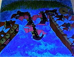 These paintings were inspired by the paintings that are painted in Java, Indonesia. They are painted on the back side in layers and then viewed from the front.